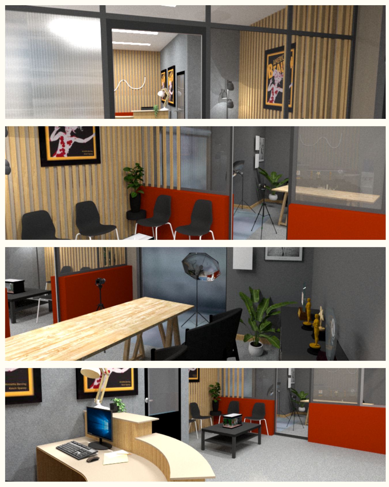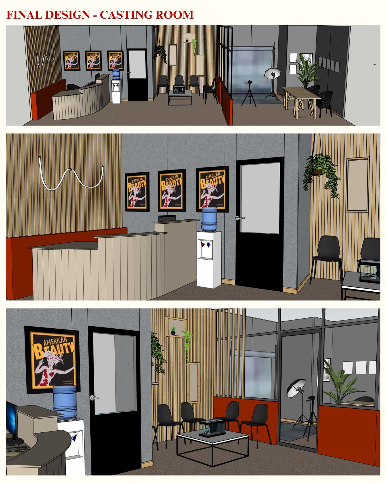 Indecent Exposure is a TV pilot written and directed by Nicole Crowley and produced in collaboration with the fourth-year TV course at IADT. I worked as production designer alongside Jess Sammon, creating three studio sets for the project: a casting room and reception area, an apartment, and a bedroom.