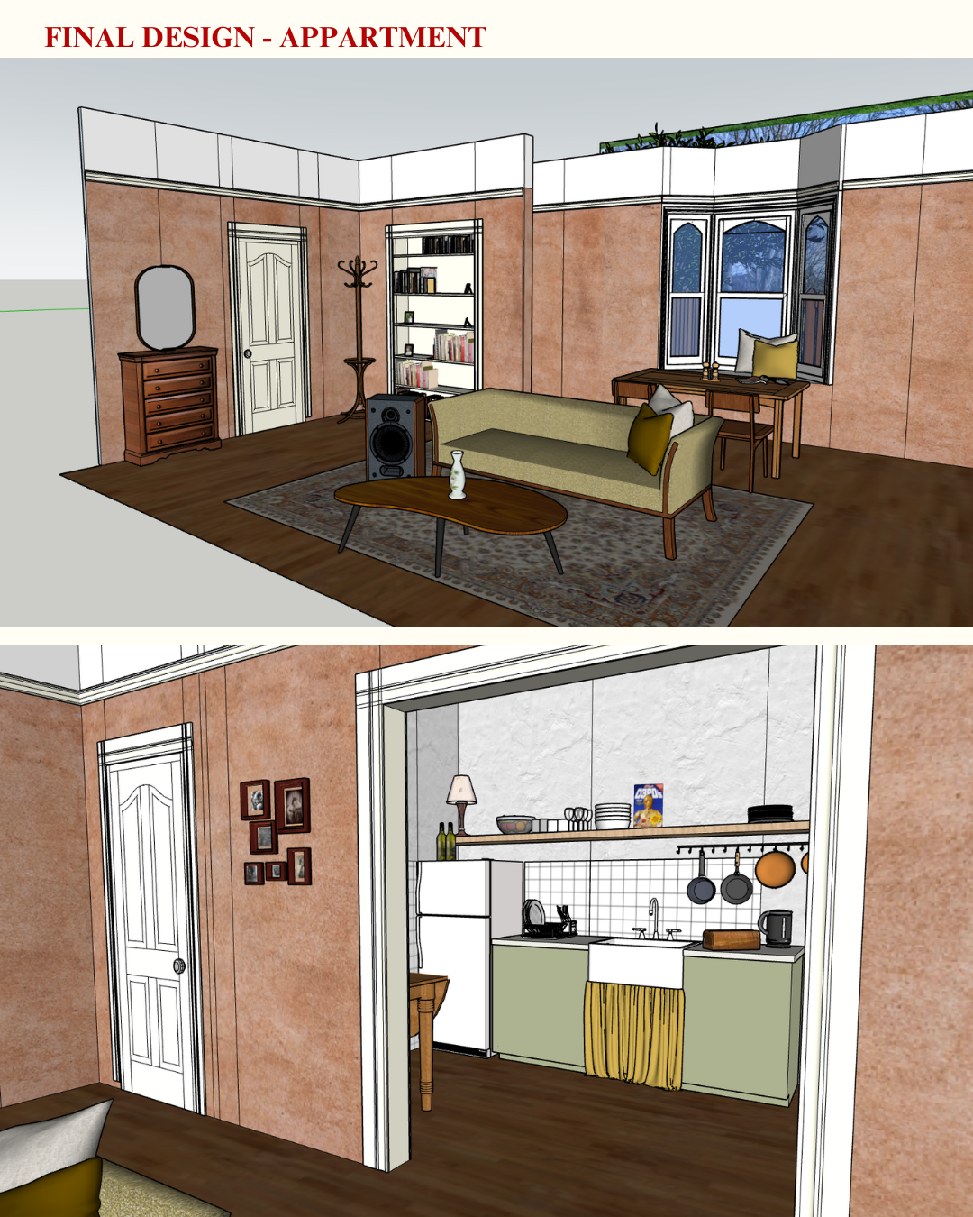All sets were built in the IADT workshop using flats, painted and finished by hand, and then installed in the studio. The project focused on creating cohesive environments that supported the tone of the story while working within tight time, space and budget constraints.