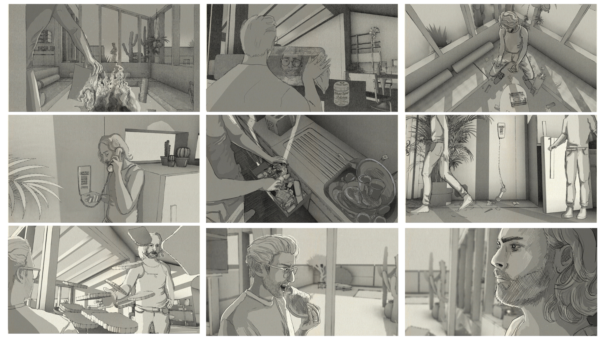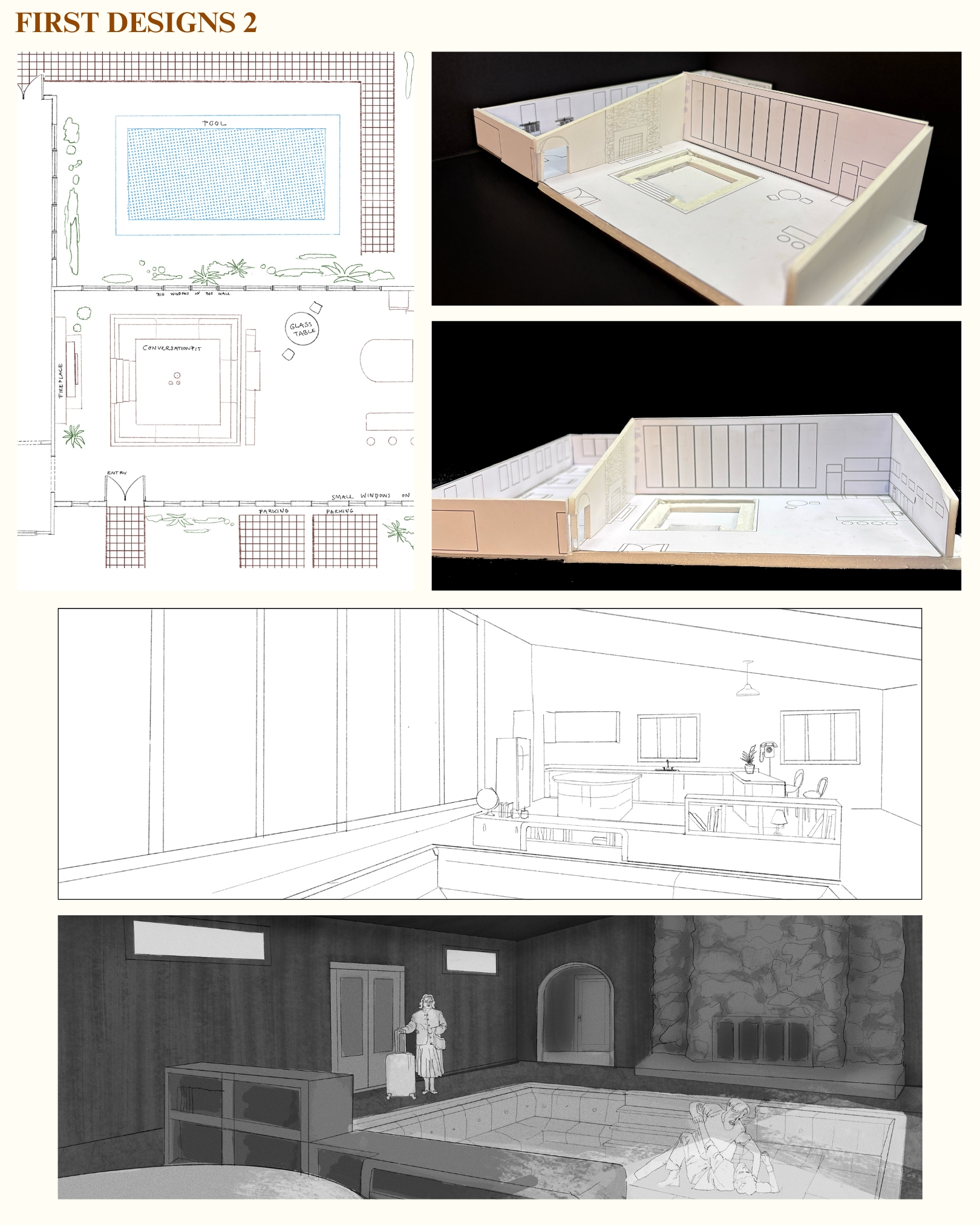 I reimagined this as a film for my Minor Project of my final year studying Production Design. I chose it because I’ve always been drawn to 1970s design and was excited to explore that era visually. I focused my research on the specific region of California where the story is set. I designed a claustrophobic living space with a slanted roof, small windows on one side, and large windows on the other, looking out onto suburbia and an empty pool. I also storyboarded a key scene where the story reaches a boiling point, using the set to heighten the emotional pressure between the characters.